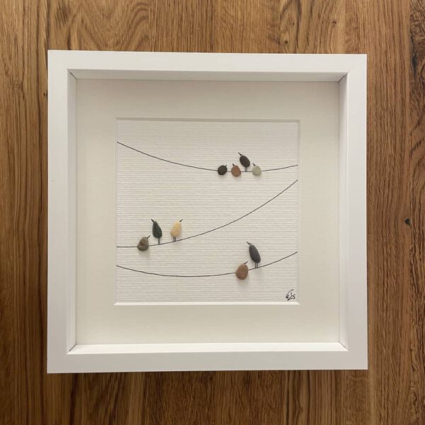 Kieselsteinbild auf Aquarellpapier in weißem Passepartout, optional gerahmt