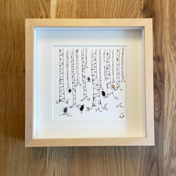 Kieselsteinbild auf Aquarellpapier in weißem Passepartout, optional gerahmt