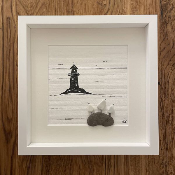 Kieselsteinbild auf Aquarellpapier in weißem Passepartout, optional gerahmt